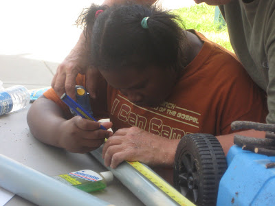This week we learned about David and how he loved to write songs, sing songs. He loved to praise God. We got into the spirit by making some of our own instruments and then having a jam session. Dez works on a little drum set made out of pvc pipe.
